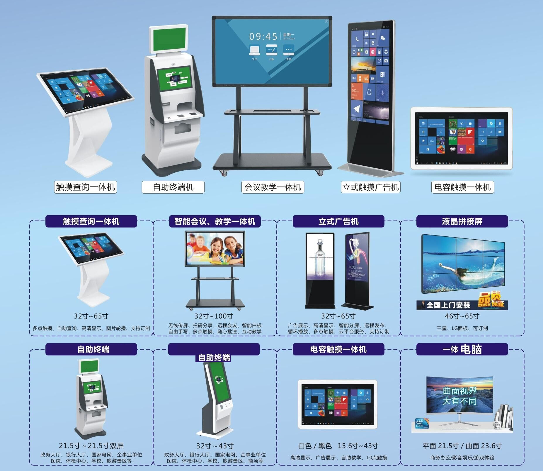應用領域:商店付款系統、入場券查詢預訂系統、金融交易、教學互動、購物中心、電影院、電視演播廳、股票證券、 大型會展、商場、銀行、辦公大廳、公司迎客屏、專賣店、房地產售樓大廳、公共事業等。